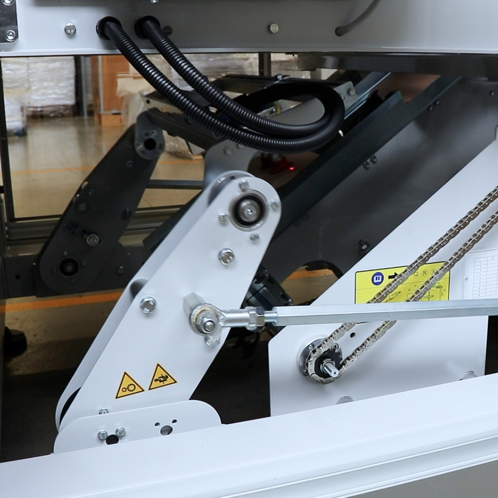 Fardellatrice automatica FA802ALV 600RP corredata con nastro in ingresso in linea a velocità variabile controllato da inverter e tunnel bicamera. La fardellatrice automatica è corredata da un separatore dotato di pressetta pneumatica sincronizzata con spintore a catena motorizza ed un nastro d’ingresso frontale con larghezza di 530 mm con guide in ingresso regolabili. Ha una barra saldante da 760 mm con sbobinatore superiore ed inferiore motorizzato controllato da inverter con tunnel di termoretrazione bicamera.