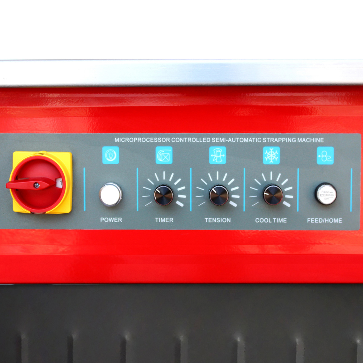 Semi-automatic strapping machine with closed structure